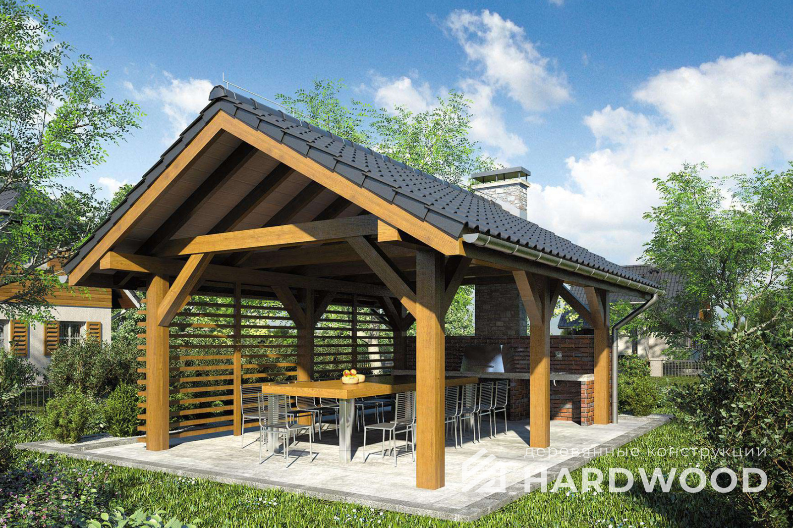 Бесплатно доставим и установим навес для барбекю с гарантией прописанной в договоре